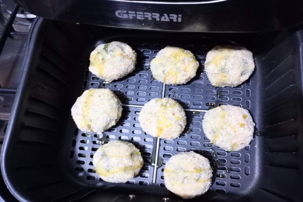 Transfer the patties to the air fryer basket, pour two tablespoons of extra virgin olive oil, cook at 356°F for 20 minutes.