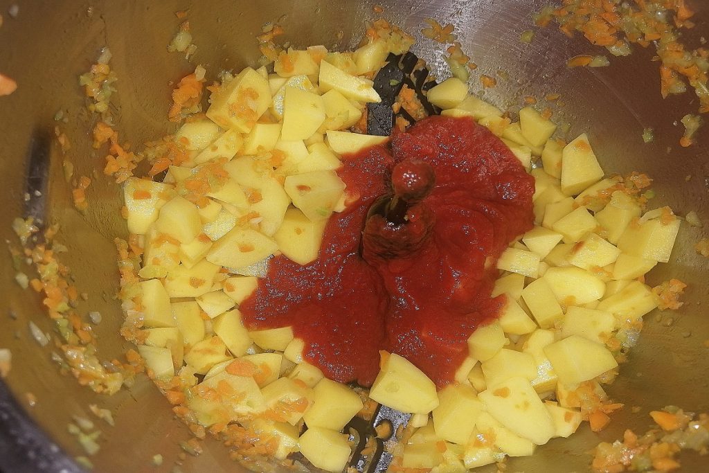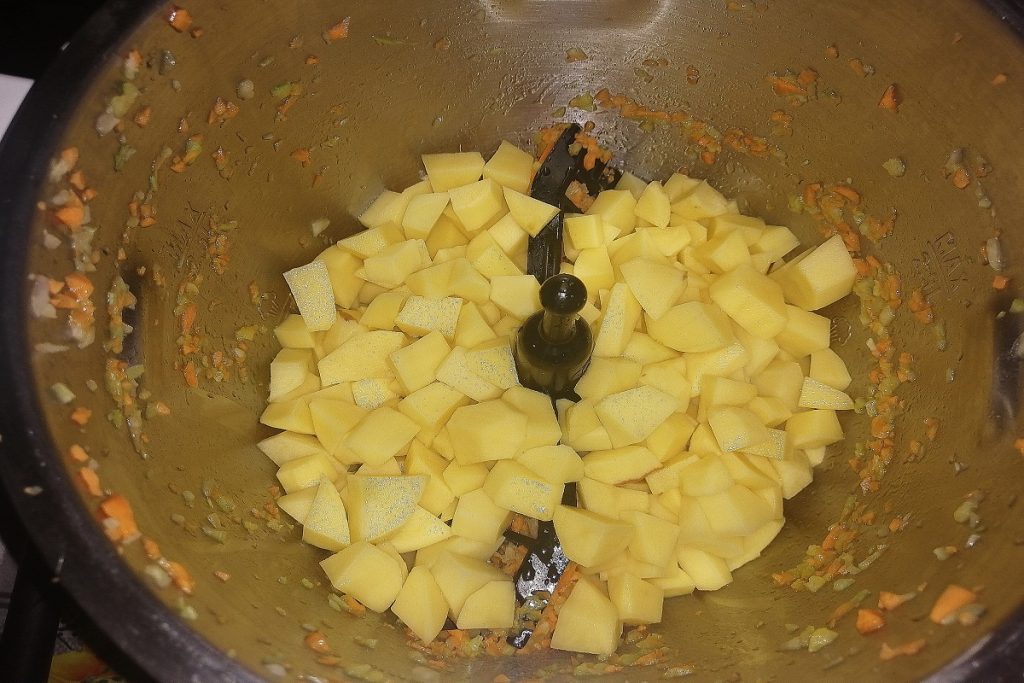 • Add the diced potatoes, stir, and let them season for a few minutes.