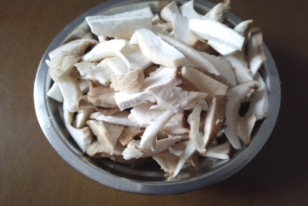Clean and slice the cardoncelli mushrooms into small pieces.