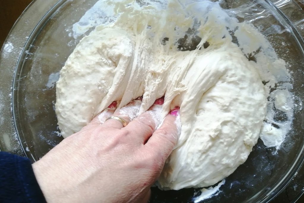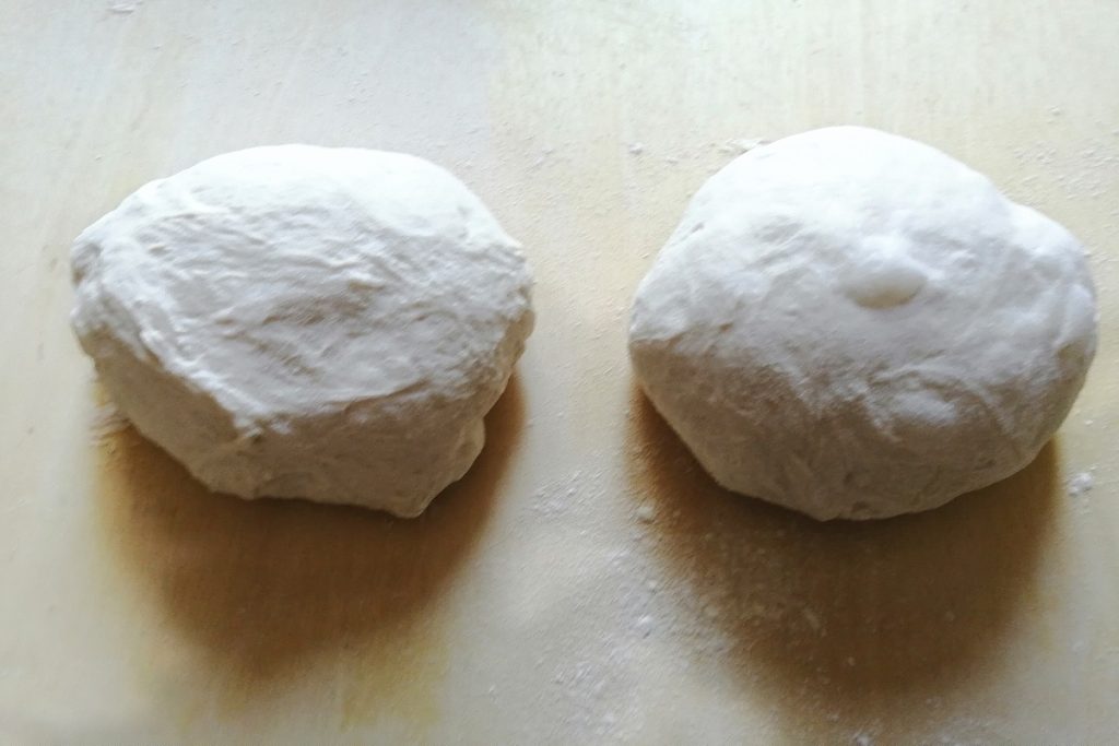 • After the time, divide the dough into two parts.