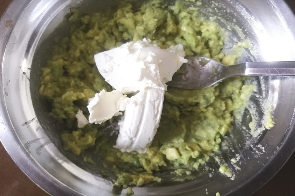 Add the fresh spreadable cheese to the avocado, I used philadelphia.