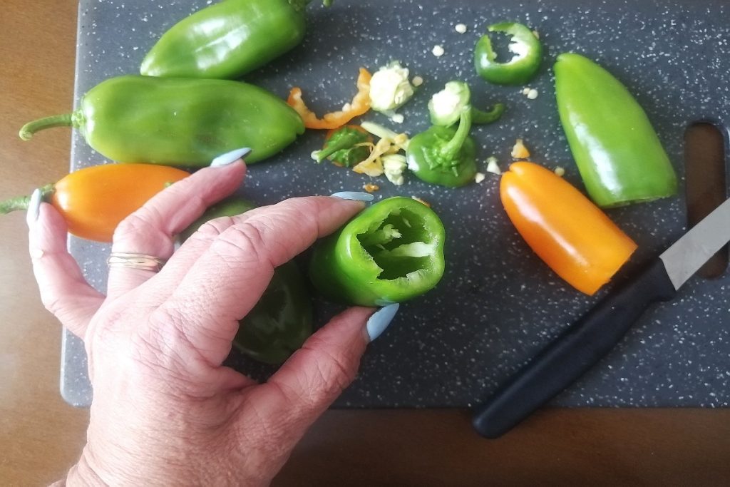 Wash the peppers and clean them by cutting off the top, empty them of seeds.
