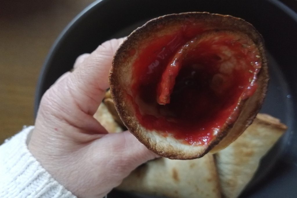 The stuffed piadina cones are a versatile and original presentation that resembles an ice cream cone — and why not fill them in a sweet version with mascarpone and Nutella? 😛