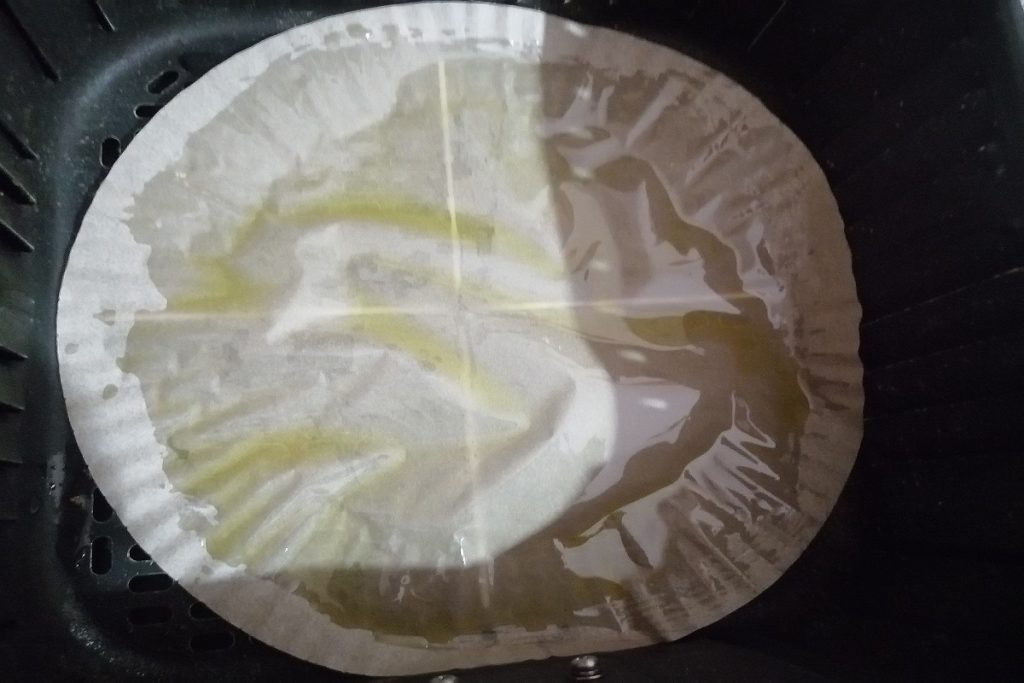 On the air fryer parchment paper, brush a little EVO oil and place the meatballs on top.