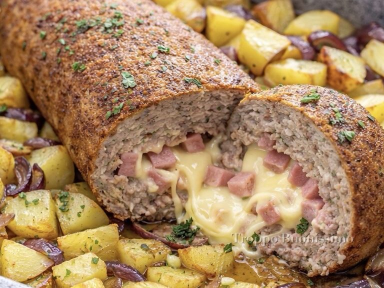 If you’re looking for an idea for a flavorful stuffed meatloaf, this version will win you over with its simplicity and versatility. Prepare it, slice it, and let yourself be enveloped by its genuine taste. Discover how to make it right away! (If you don’t like onions, you can omit them!).