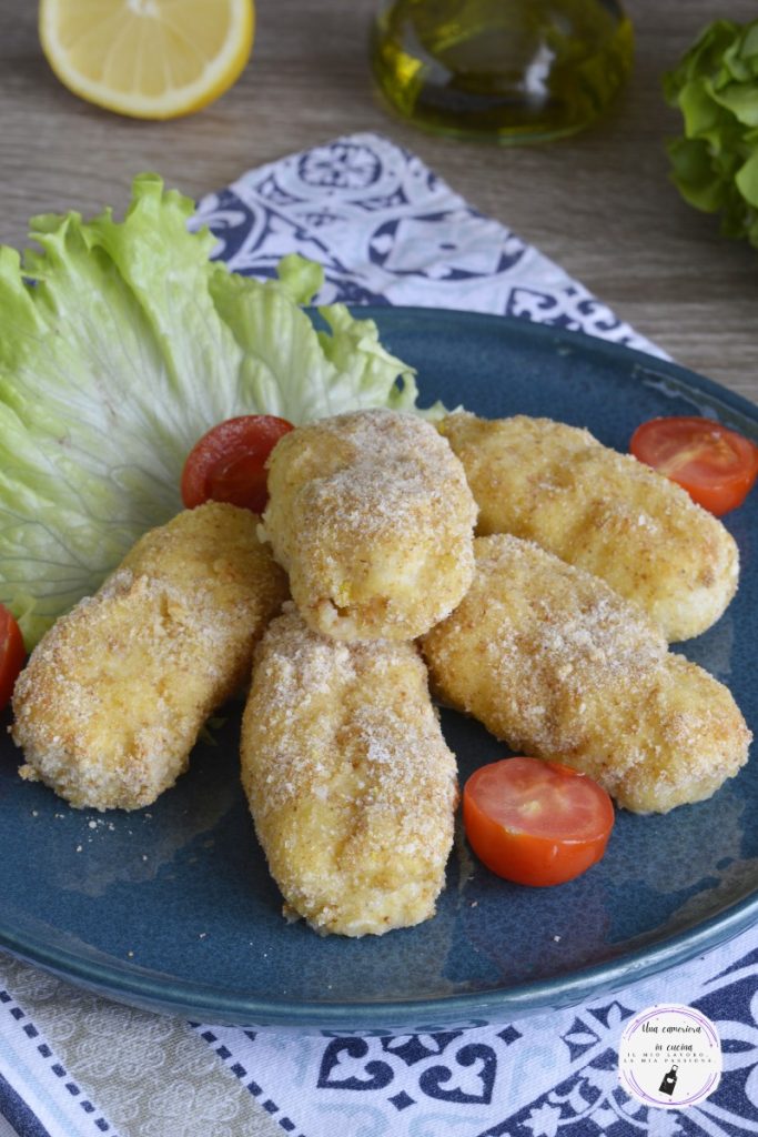 The cod croquettes are an easy and tasty fish main course. Simply prepared with fresh cod fillet, eggs, and breadcrumbs, baked for less fat. Great to enjoy either as a main course or as an appetizer. Ideal for everyone as they contain no bones, they are very tender and crispy thanks to the double breading.