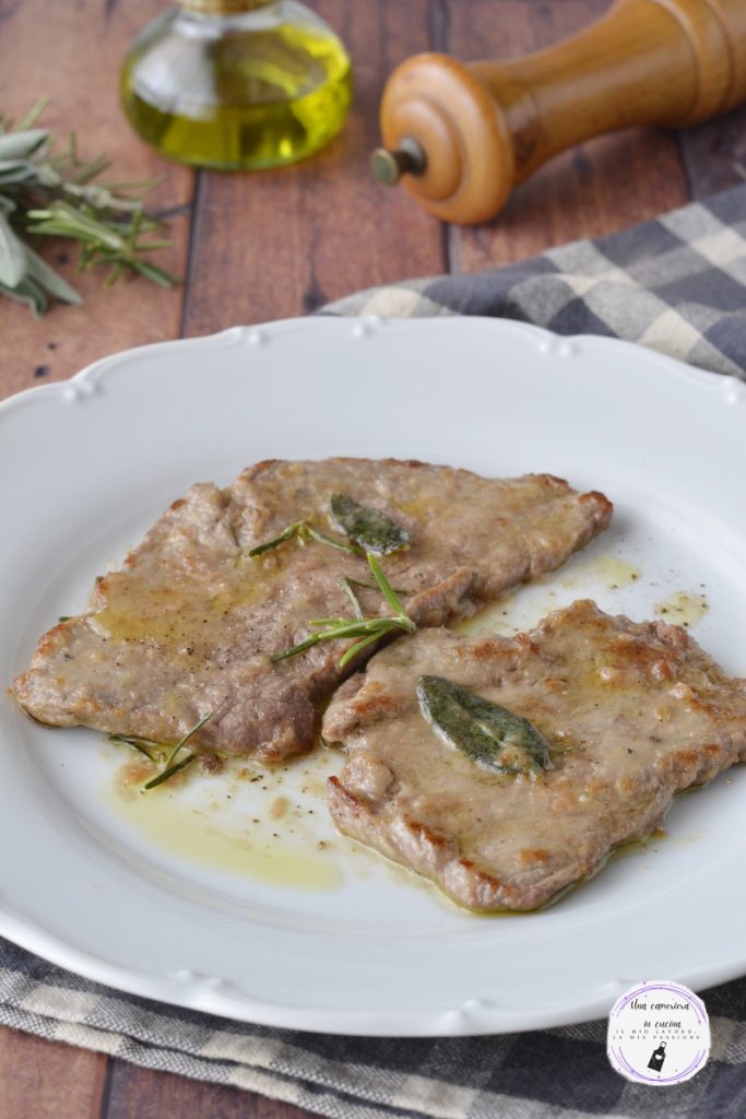 Salt, pepper, and serve the slices hot with the cooking jus, adding more sage and rosemary if desired, even chopped.