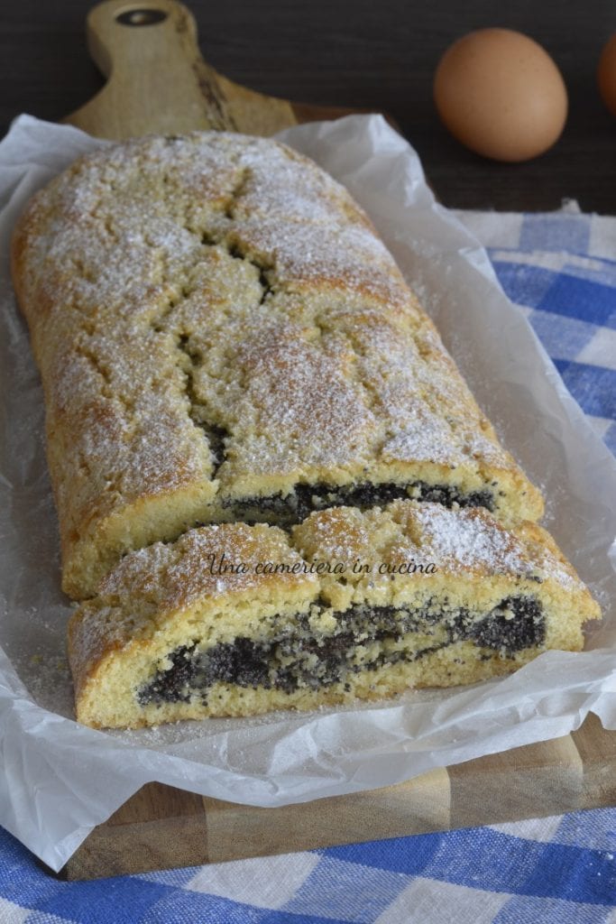 • Once cooked, remove the poppy seed strudel from the oven, let it cool slightly, and serve it with a dusting of powdered sugar. Cut it into 14 slices about 1 1/4 inches thick.