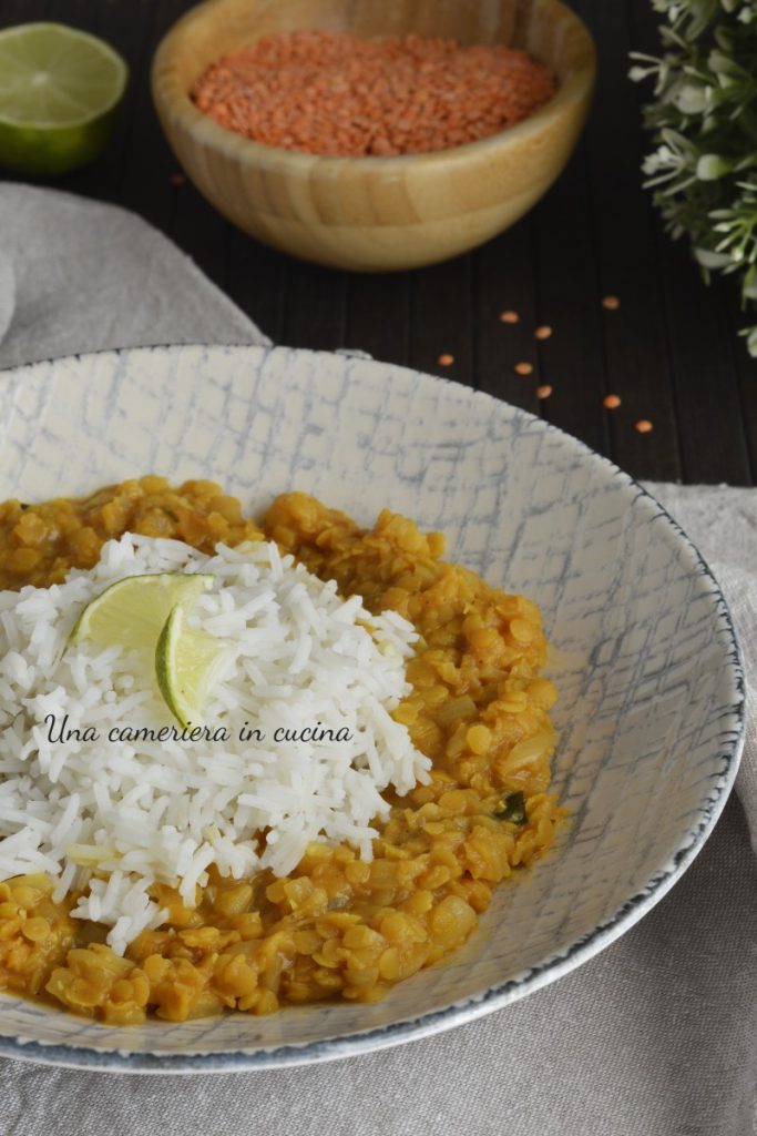 The red lentil dahl is a dish of Indian origin. It is a thick legume-based soup, in this case made with red lentils, coconut milk and spices such as ginger, cumin, turmeric and garam masala. It can be served on its own or accompanied by typical naan or chapati bread or basmati rice, ideal to serve as a side and turn it into a main course.