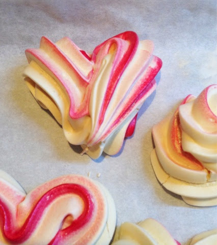 Meringue Hearts are an easy and economical treat, perfect for Valentine’s Day or children’s parties. Beautiful to see and easy to make. I had never tried making meringues before because the cooking process always scared me a bit, but making them was easy and fun.