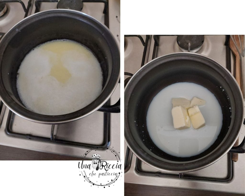 In a saucepan, combine water with milk (you can also use just water), a pinch of salt, and butter. When it starts to bubble, lower the heat.