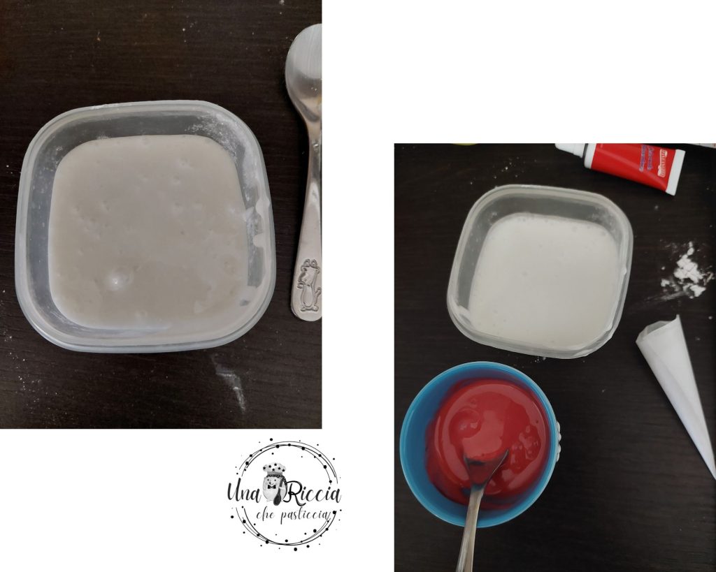 Take the egg whites and whisk them quickly until they form a foam, then add the lemon and the powdered sugar and mix. Divide the mixture into small bowls if you want to make colored icing and add a few drops of the chosen color in each bowl.