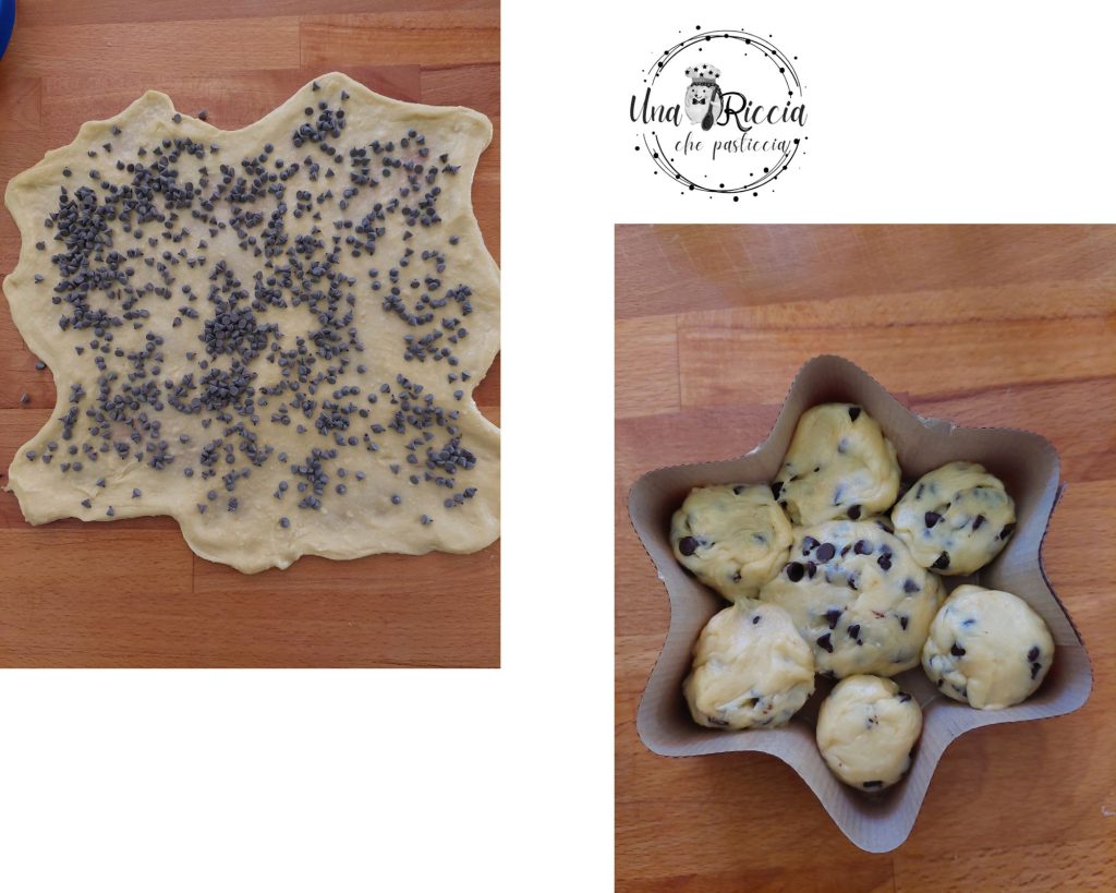 Slightly compact the tips and the central part of the star to unite them and let rise for 3 – 4 hours until they almost reach the edge of the mold. You can let the Christmas star with chocolate chips similar to panettone rise in the turned-off oven.
