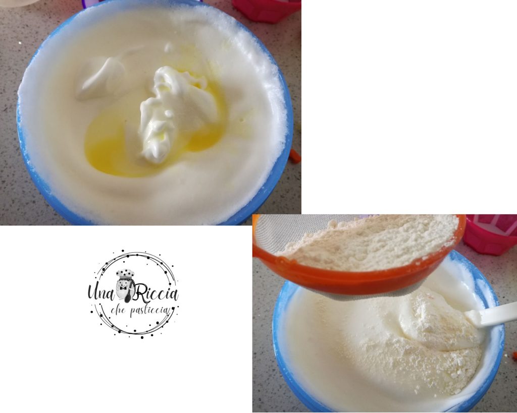 Put the electric mixer aside and take a spatula. Add the orange and lemon flavoring vials and gently mix from bottom to top. Mix the flour and cornstarch, then sift them into the egg whites and gently mix until all the flour is well incorporated.