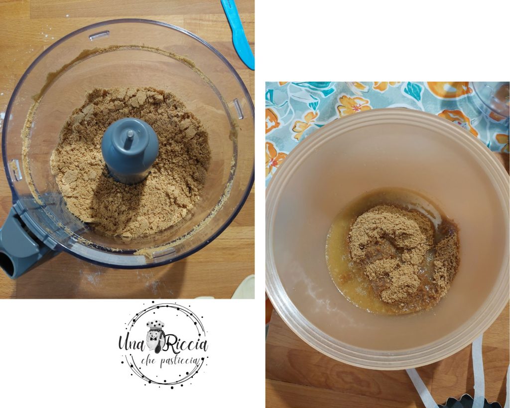 • In a kitchen mixer, insert the dry cookies and activate, let it go until they become powder in the meantime put the butter in a saucepan and melt it over low heat avoiding frying, then add it to the cookie flour and mix.