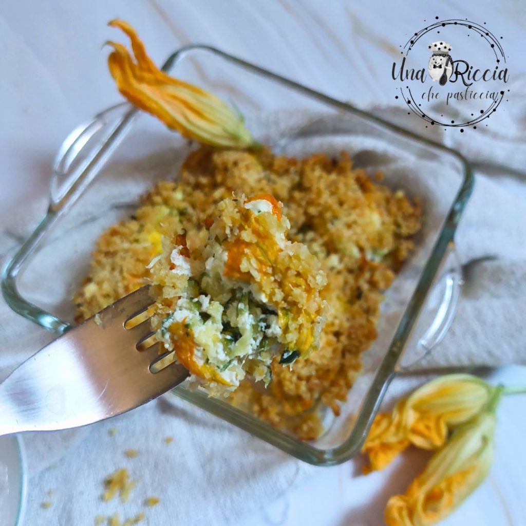 Today a recipe for an appetizer: stuffed and gratinated zucchini flowers.