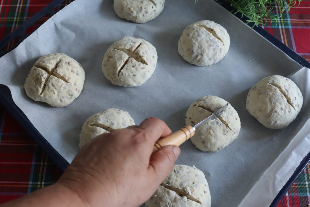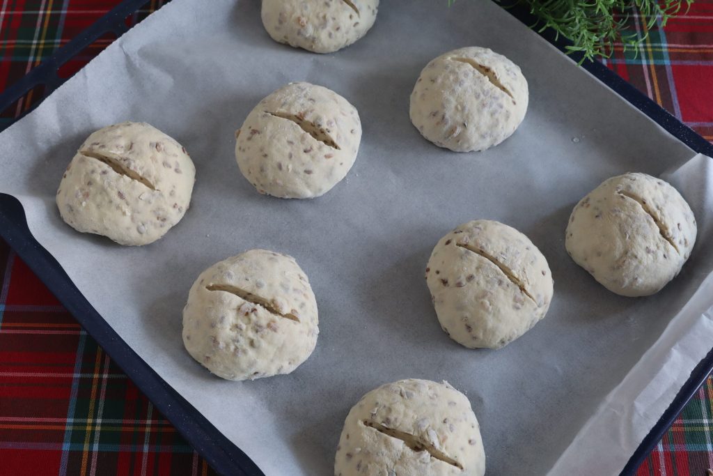 • I place the 4-grain buns directly on the baking tray with parchment paper.
