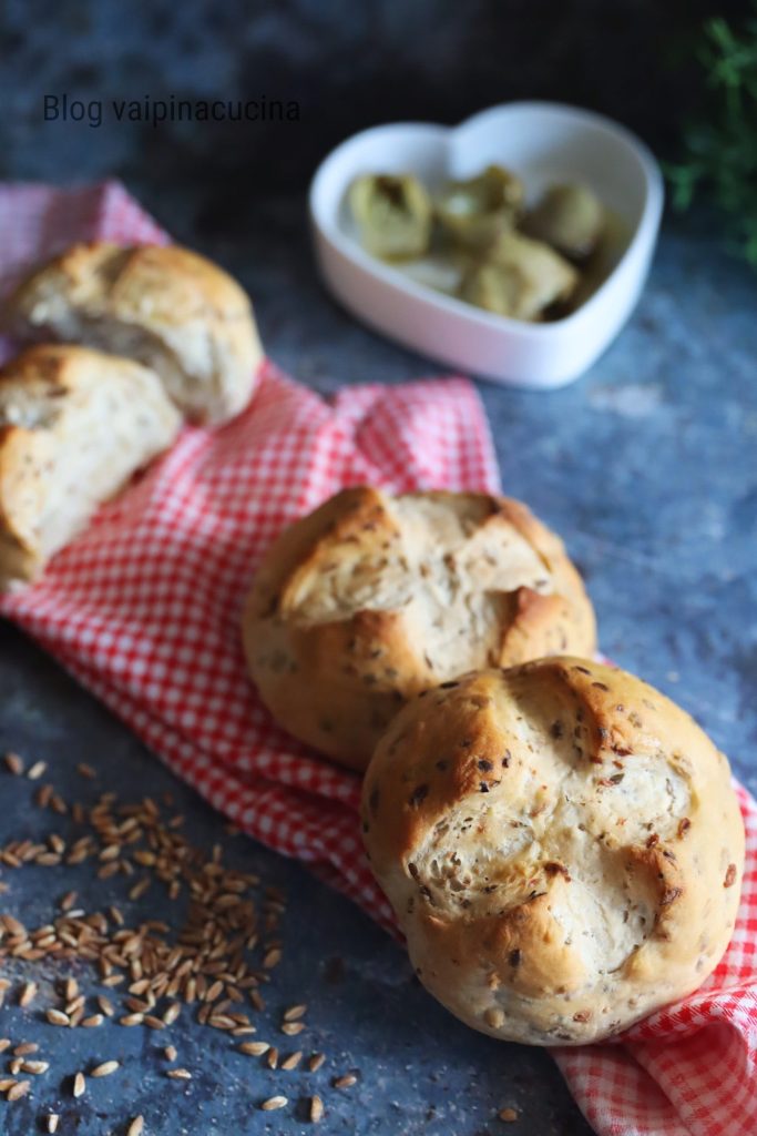 • I often make the 4-grain buns and use them to accompany appetizers of artichokes in oil or with sun-dried tomato pâté, always homemade by me.