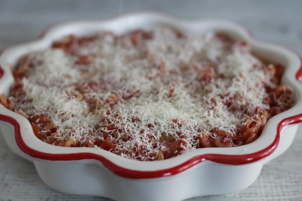 Finish with the remaining grated Parmesan cheese.