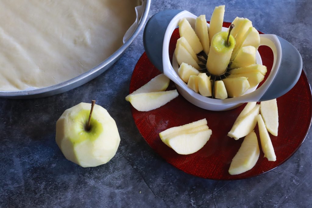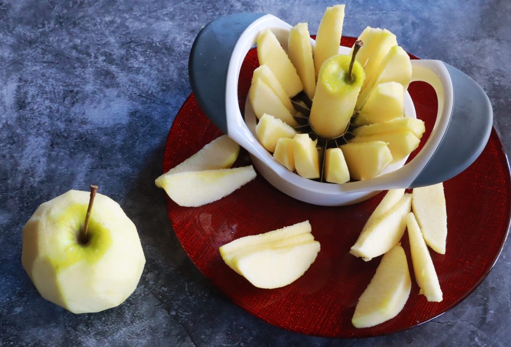 I peeled the apples and cut them into wedges using the dedicated apple slicer.