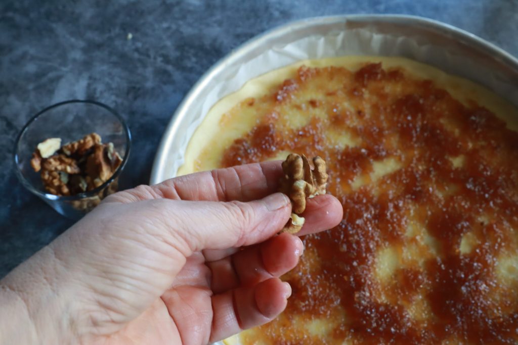 Dust with powdered sugar and enjoy a moment of relaxation with a cup of coffee and a slice of totally vegan and lactose-free apple and walnut tart.