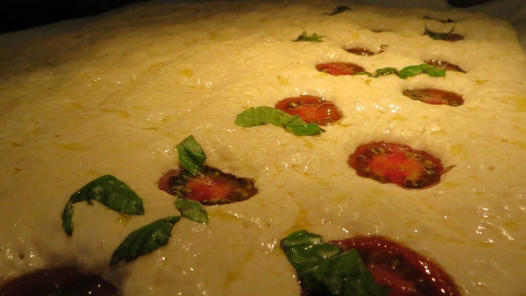 Specialty of Apulian cuisine, a typical product of the province of Bari, Barletta, Taranto, Andria, and Trani. But let’s also not forget the province of Brindisi and Foggia, an oven-leavened product typical of all of Puglia in general. The focaccia par excellence that includes fresh tomatoes and baresane olives. It was born in Altamura in wood-fired ovens, to exploit the initial heat of the oven and not burn the bread, a piece of dough is tested in a pan seasoned with plenty of oil and fresh cherry tomatoes, which today is prepared specifically.