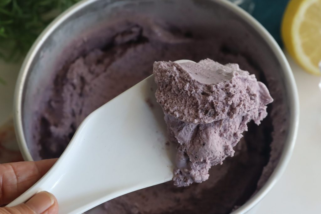 Here’s the black mulberry ice cream ready with the ice cream maker.