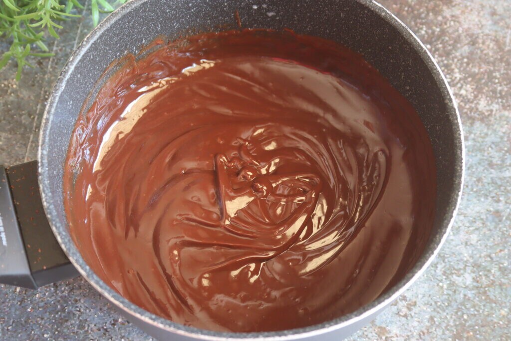 I immediately prepare the ganache to cover the chocolate truffles. I boil the cream and remove the small pot from the heat source, then add the dark chocolate chopped into small pieces.