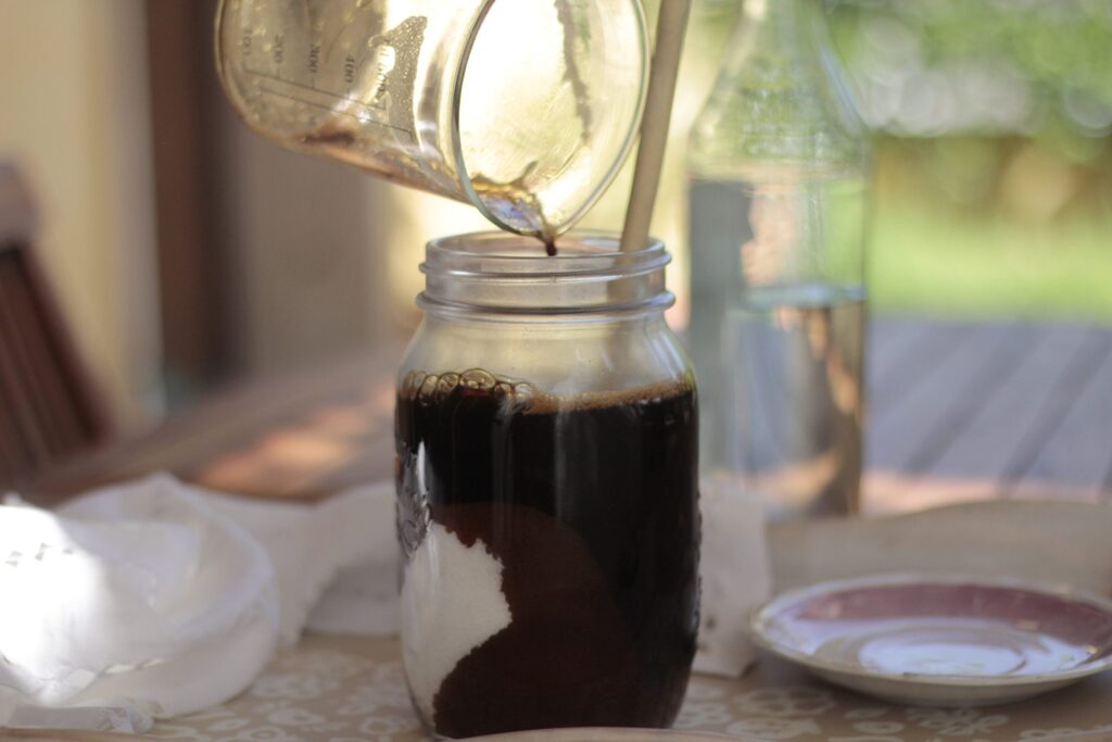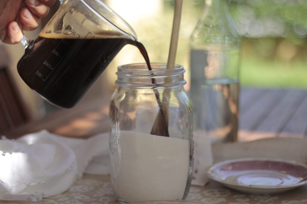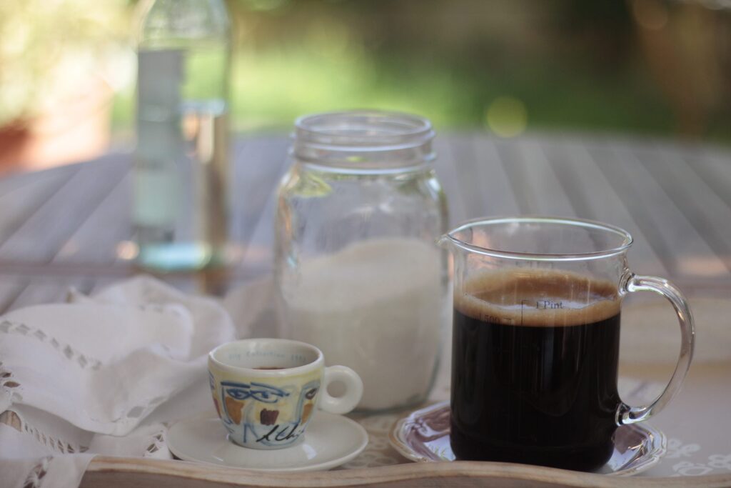 Don’t wait for the coffee to cool, pour it directly over the sugar (already weighed, of course) so that, being still hot, it will dissolve more easily.