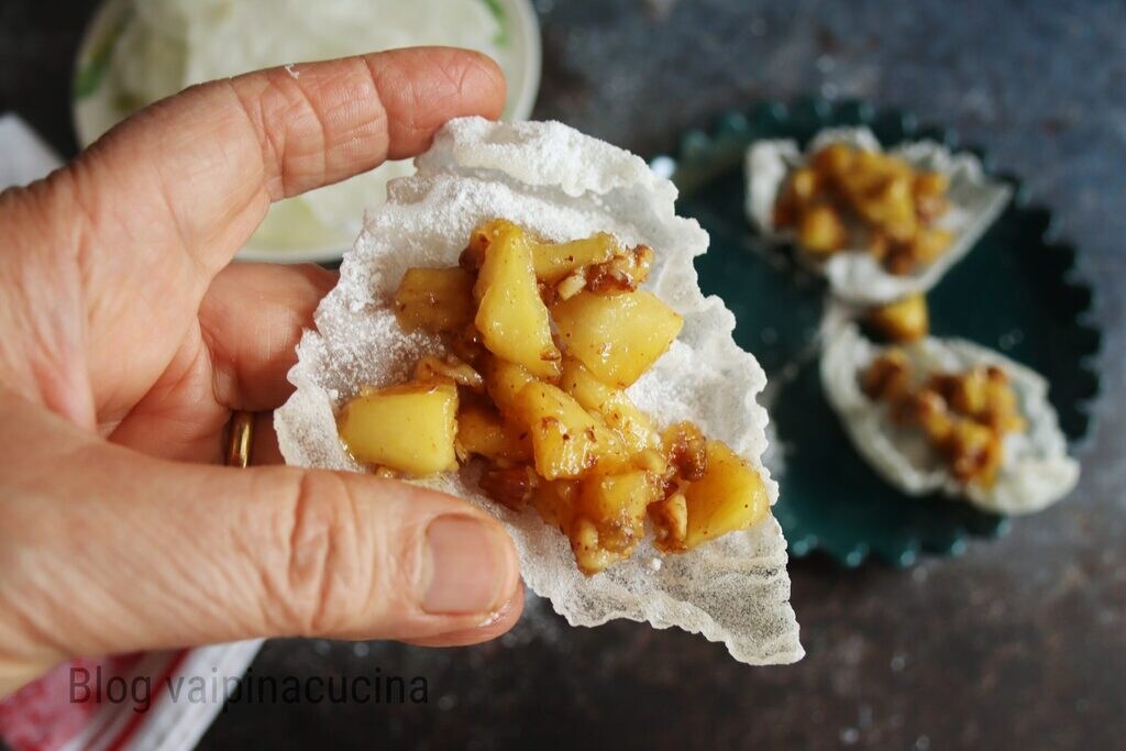 Crispy Apples in Rice Paper might seem like a very difficult recipe, but it is not at all, in fact, nothing is simpler and quicker for preparing a last-minute dessert with only 2 ingredients. I must say that I love apples both cooked and raw, of course, and everything that revolves around apples whether it be sweet or savory recipes.