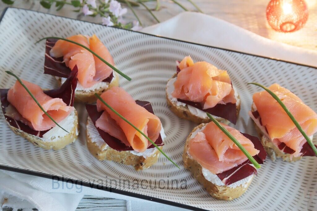 Crunchy baguette with salmon is an appetizer to impress and please even the most demanding guest. Small refined delights made with fresh spreadable cheese and salmon, very simple crunchy baguette and easy to prepare. Ideal for accompanying aperitifs and starting a festive evening with joy. It is always advisable to toast the bread for two reasons: firstly, because it loses moisture and becomes crunchy and thus more enticing to the palate, and secondly, it is advisable to toast it because it allows the bread to absorb less of the condiments.