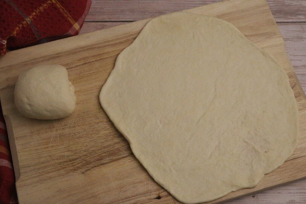 and after the time has passed, divide the dough into 4 balls and roll them out to a diameter of about 7 inches.