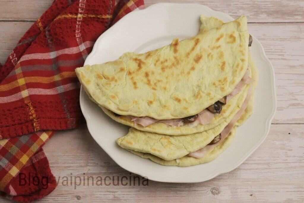 Homemade flatbread with Gorgonzola, mushrooms, and ham starting from the flatbread itself, and since I started making them myself, I don’t buy them anymore. In fact, I’m specializing in making them with extra virgin olive oil rather than lard. I have nothing against using lard, but since I’ve been trying to control my weight, I use fewer fats and prefer EVO oil for any dressing, whether raw or cooked. Flatbreads are super easy to prepare even the day before, I put them in a bag and garnish them as needed. This is my favorite dinner at least once a week when I come back from the pool at 8:30 pm too tired to cook. My flatbread is a real dinner saver, and I change the ingredients every time.
