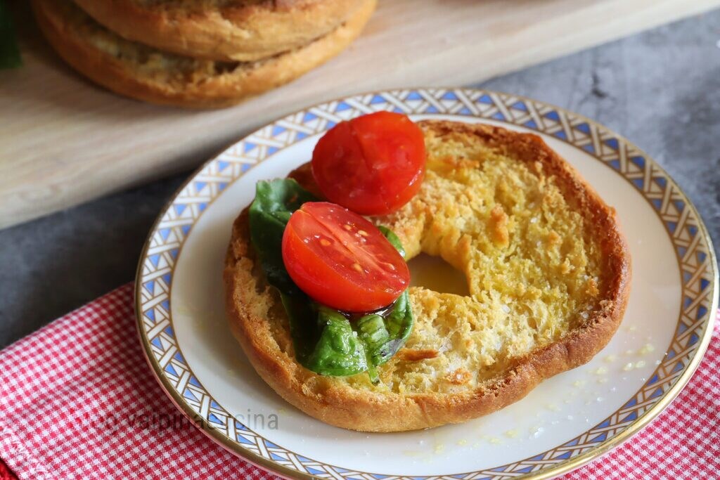 Homemade friselle with re-milled durum wheat semolina flour have a completely different taste. Friselle or twice-baked bread is a long-lasting product due to its cooking method, which is twice-baked. Typical of Puglia, called frise or friselle, are bread rolls made with durum wheat flour that are baked in the oven once, then cut in half and baked again for toasting. Naturally, friselle are not only from Puglia, but also from Basilicata and almost the entire south of Italy is interested in this simple and rustic food. In not-so-distant times, friselle were used by sailors when they were at sea, and they would soften them by soaking them directly in seawater to consume.