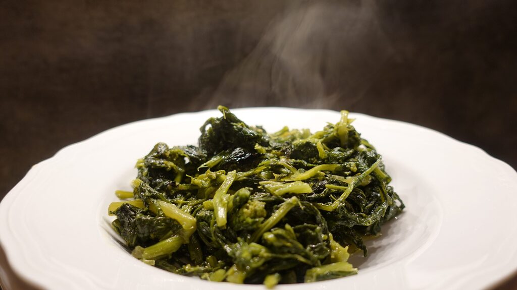 In a pan with three tablespoons of extra virgin olive oil, lightly fry the garlic and chili pepper, add the broccoletti and cook covered for twenty minutes, stirring often.