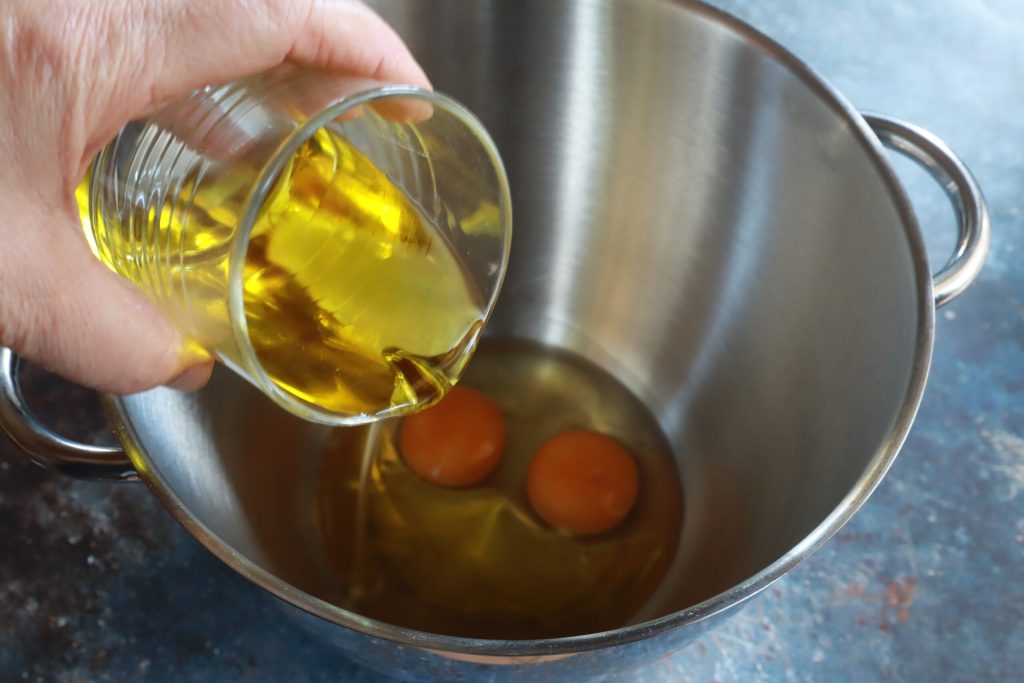 I put the eggs and the oil into the stand mixer