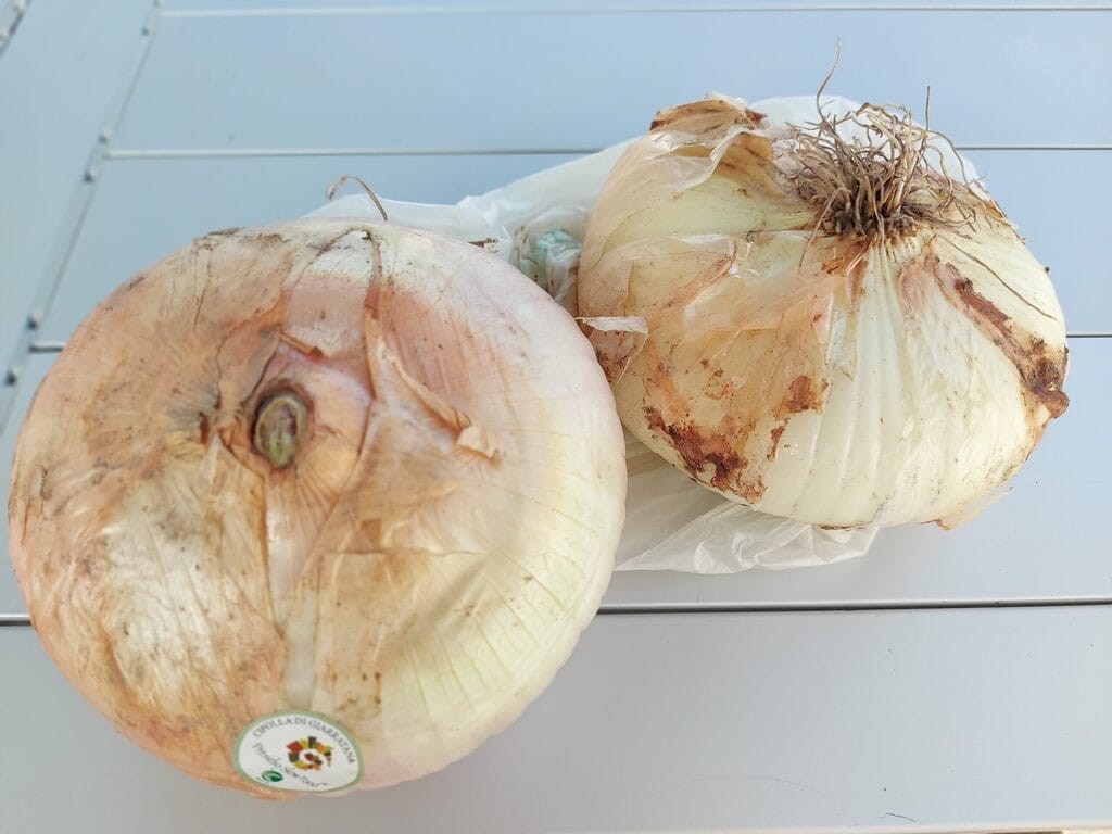 If you happen to be in Sicily on August 14th in the Ragusan municipality, more precisely in Giarratana, for the feast of San Bartolomeo, local onion specialties are prepared in many different ways with both traditional and creative recipes. This onion is only available fresh in July and August. Try the scaccia with tomato and onion, but also the stuffed onions or baked ones. Great for its sweetness, even enjoyed raw in a tomato salad.