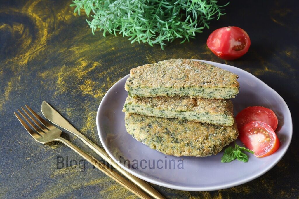 And here they are, ready, the homemade vegan spinach patties, beautiful and crispy.