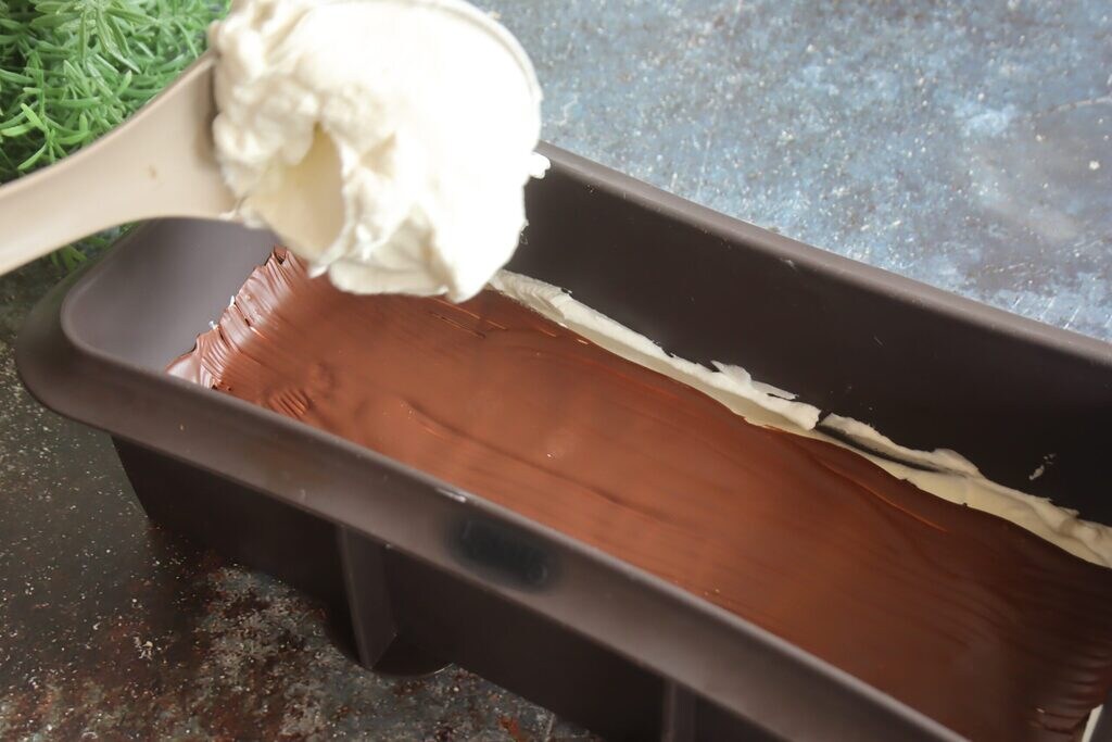 • Melt the dark chocolate using a double boiler and use a brush to create 4 thin strips on parchment paper (about 5 x 9 inches), then freeze for 30 minutes. Whip the heavy cream with the condensed milk. Prepare the loaf pan (better if silicone), start by placing a chocolate sheet (prepared and frozen previously) and a quarter of the whipped cream mixture, continue with another layer of dark chocolate and whipped cream. Place a tablespoon of hazelnut granules between each layer and continue until you have 4 in total. It will be ready to enjoy as a dessert after 4 hours in the freezer. Invert the Viennetta onto a serving plate.