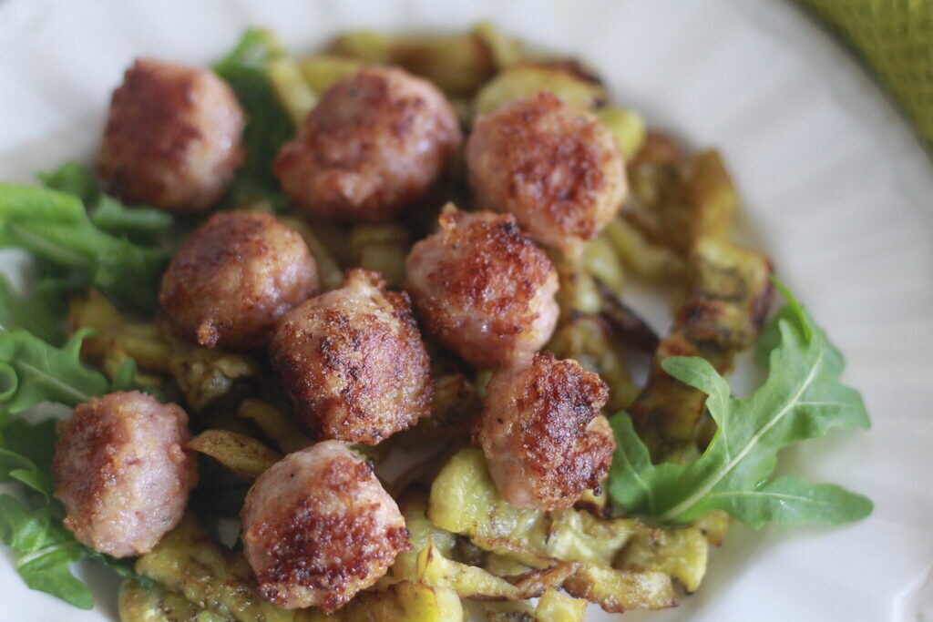 • With twenty minutes of cooking in the pan, the sausage meatballs are ready