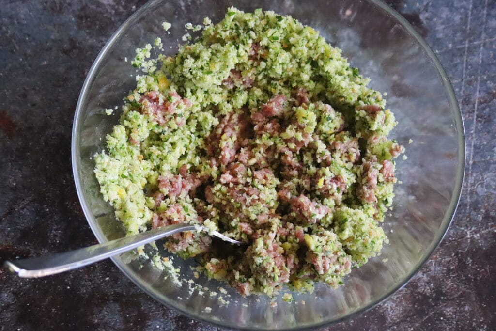 • In the food chopper, I put the zucchini with parsley and garlic, the zest of half a lemon with a little breadcrumbs, I chopped until everything became homogeneous, added the rest of the breadcrumbs, a pinch of salt, and mixed.
