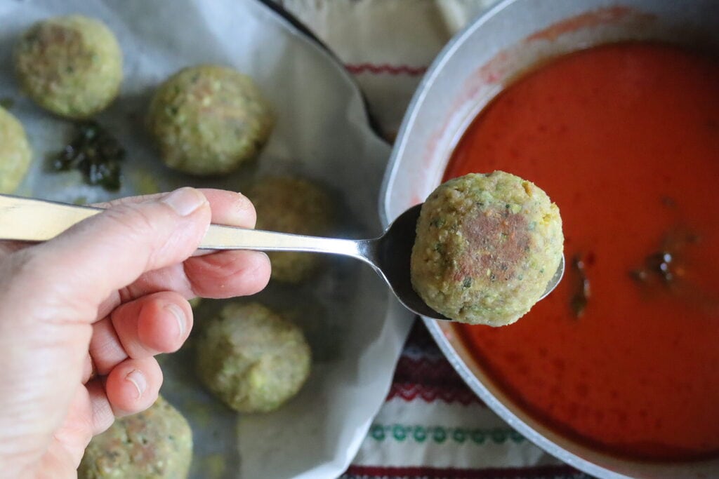 • as soon as the meatballs are ready, I plunged them into the tomato