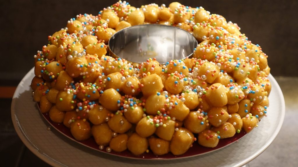 Neapolitan Honey Sweet Struffoli, a recipe from the Neapolitan tradition. Desserts in Italy and around the world play an important role in celebrating holidays. Each occasion has its own dessert. All desserts originate regionally, then become known and loved by all. Something similar is prepared in Umbria, Abruzzo, and Molise, the cicerchiata which closely resembles struffoli.