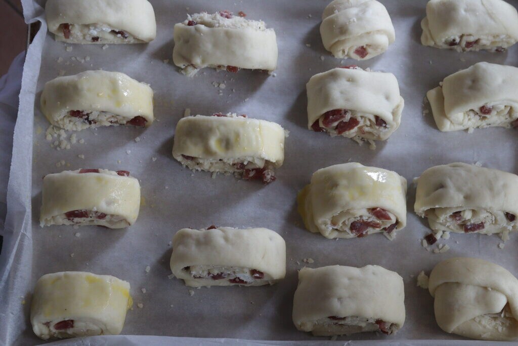 Roll the filled dough gently.