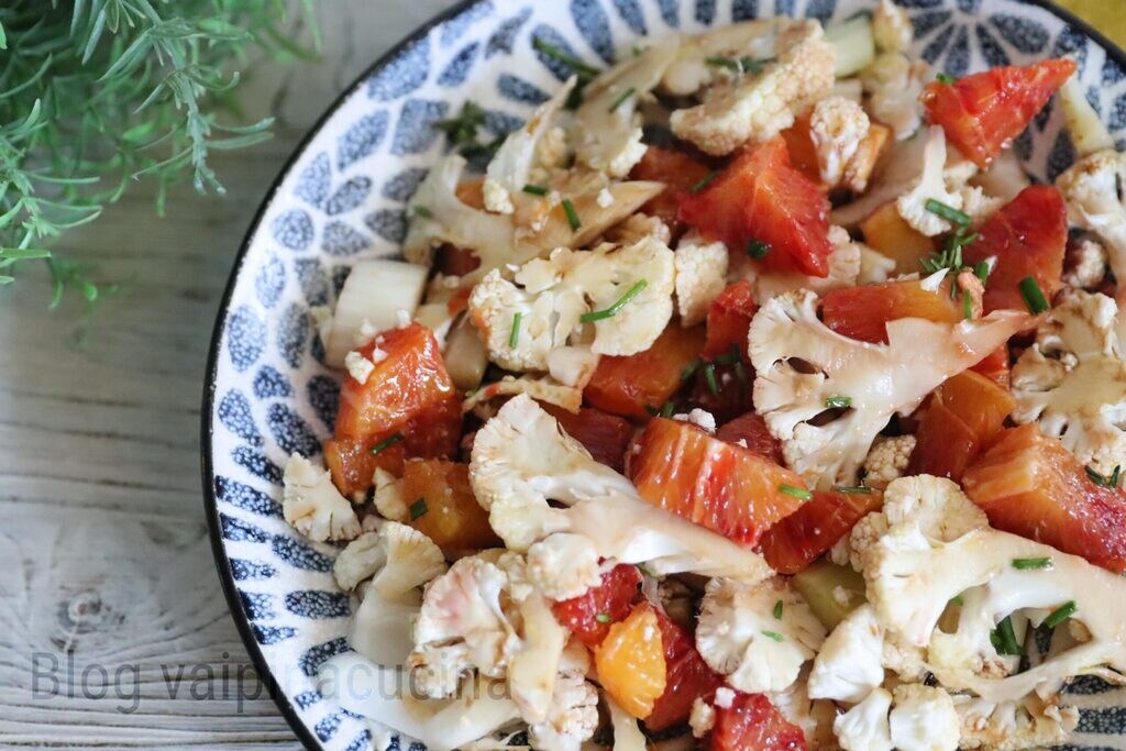 Orange and cauliflower salad, it may seem like a fresh and summery dish, but I must say that it is also delightful in February during the cold with a nice orange and cauliflower salad. Cabbages are perfect for hearty and tasty dishes, ideal for winter like whole cauliflower or florets allow us to cook it in many ways and it is also delicious raw in a salad. Raw, cauliflower can be seasoned together with the oranges, and you can also add nuts like walnuts or toasted hazelnuts.