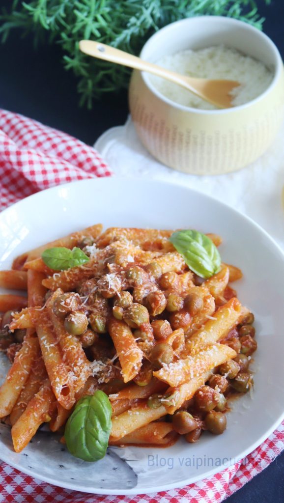 Pasta and peas with tomato and pecorino, a simple first course to prepare as an alternative to the usual pasta with fresh tomato and basil. Although peas are a spring legume, we can’t resist using them all year round, taking advantage of the frozen ones for their goodness and because they are rich in minerals such as potassium, iron, magnesium, vitamins, and proteins, not forgetting folic acid. This is a dish my mom often prepared during the spring harvest period, and my dad would plant and collect so many that we would freeze them for the huge production quantity.
