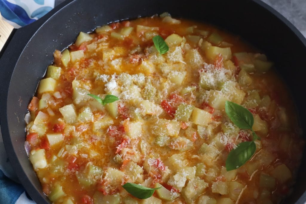 I would also like to suggest another simple recipe of mine with the Sicilian long zucchini, which is now starting to be found more commonly at local markets. I’m talking about the Sicilian long zucchini stew.