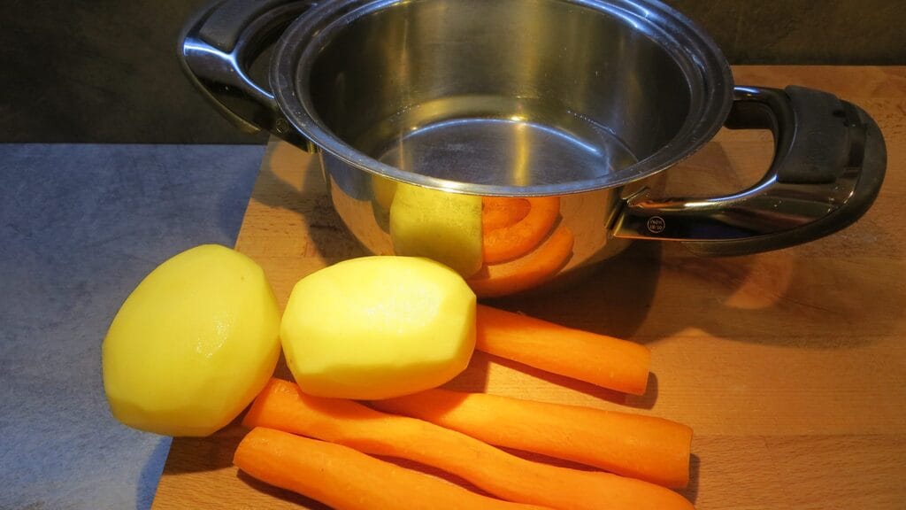 • Add all the ingredients except for the ricotta and butter to the carrots and potatoes.