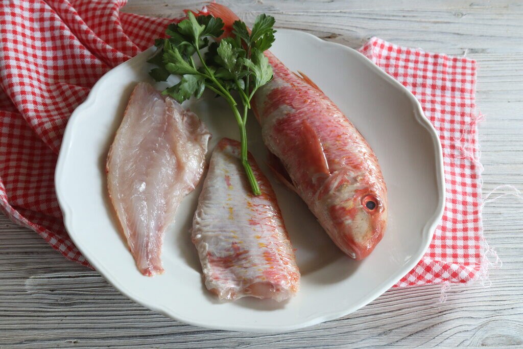 The mullet feeds on small crustaceans generated by the presence of Posidonia on the seabed, which gives it its red color.