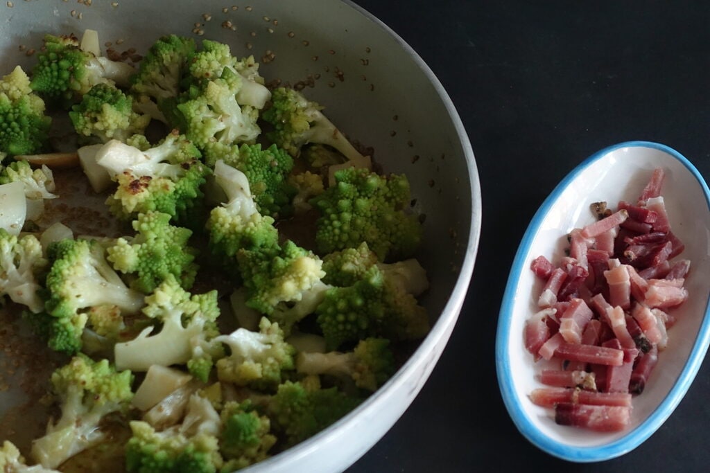 The broccoli cabbage is also called Romanesco broccoli or Big Romanesco. It is unmistakable for its conical florets and bright green color. The season has just begun and will extend throughout the winter and much of the spring. It can be cooked in the same way as broccoletti and cauliflower, but having such a beautiful decorative appearance, it is suitable to be cooked and served whole, au gratin with breadcrumbs or with béchamel sauce.